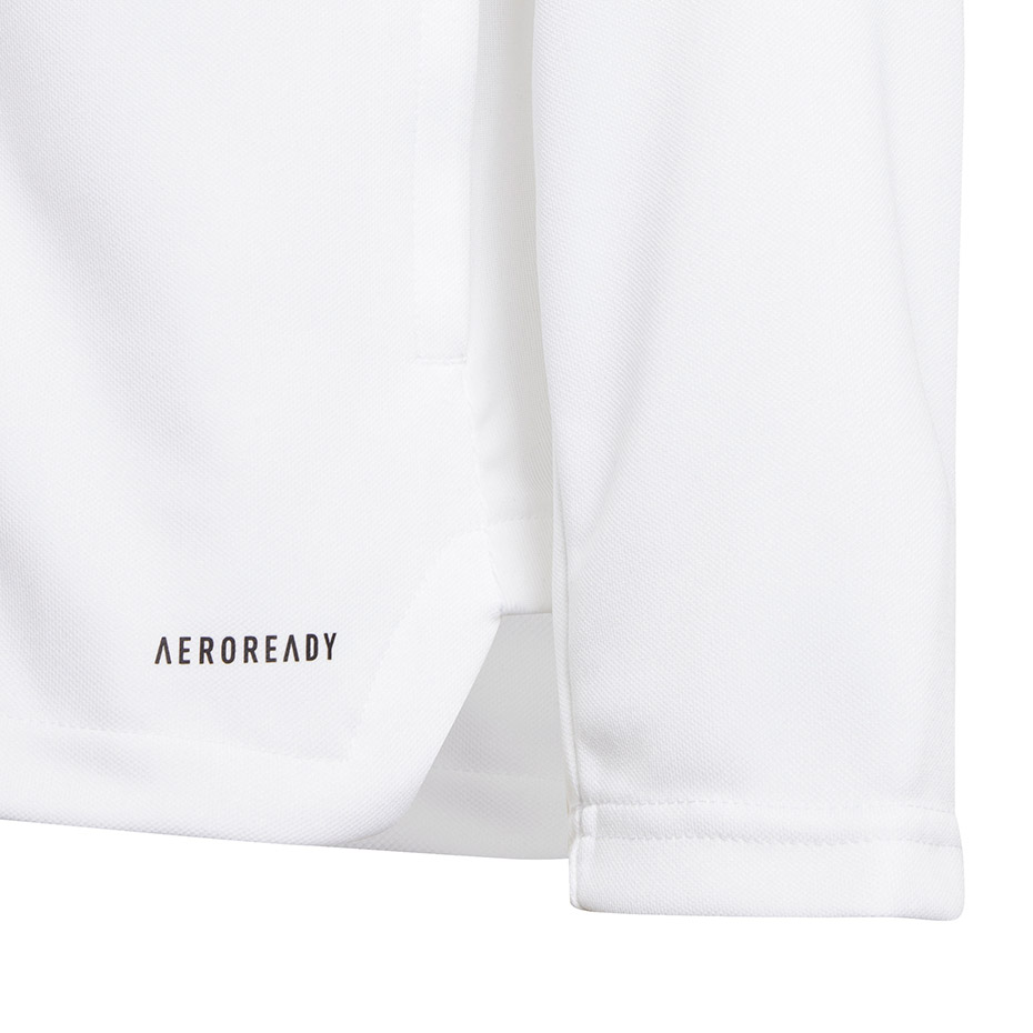 Bluza piłkarska adidas przeznaczona dla dzieci sprawdzi się podczas treningów. Wysoka stójka. Zamek na całej długości. Dopasowany krój z bocznymi wycięciami. Technologia Aeroready pomaga osuszać skórę i zwiększa wygodę. Paski na rękawach. Subtelne logo. Włókna Primegreen.