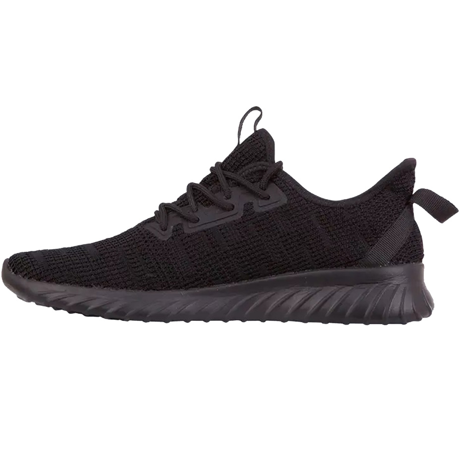 Buty Kappa sprawdzą się w czasie aktywności jak i podczas noszenia na co dzień. Konstrukcja pół-skarpety została wykonana z materiałów syntetycznych, które są niezwykle trwałe. Klasyczne sznurowanie oferuje możliwość idealnego dopasowania oraz amortyzację. Podeszwa zewnętrzna wykonana z połączenia pianki EVA oraz phylonu odpornego na ścieranie. Model w kolorze czarnym to idealna propozycja dla kobiet i mężczyzn.