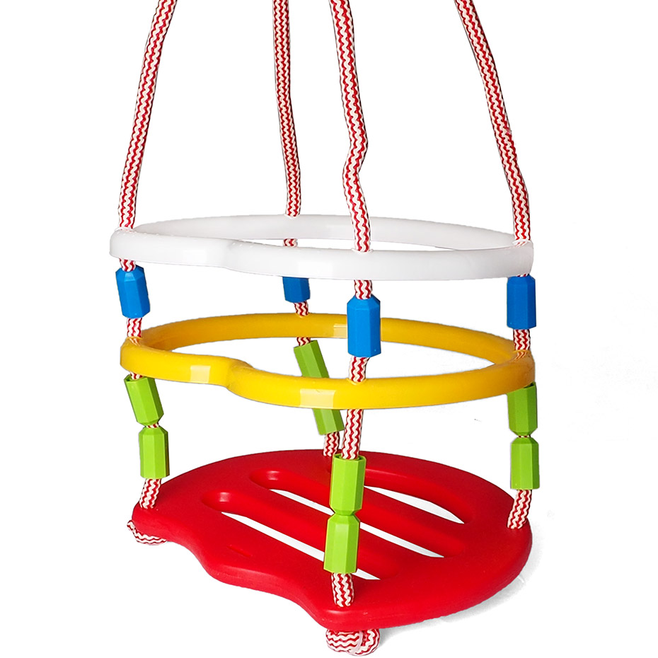 Huśtawka przeznaczona dla dzieci marki Kimet pozwala na użytkowanie warunkach domowych. Wykonana z trwałego tworzywa sztucznego. Linki mocujące wykończono oczkami ze stali cynkowej.