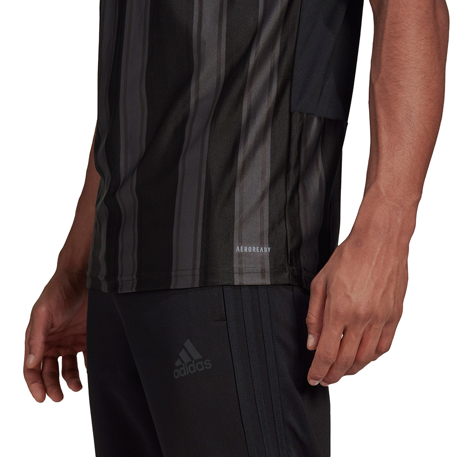 Męska koszulka piłkarska adidas sprawdzi się w trakcie meczu jak i treningu. Lekka konstrukcja ze wsparciem technologii AeroReady zapewnia suchy komfort. Klasyczny krój nie krępuje ruchów. Czarny design z pasami i błyszczącą nitką.