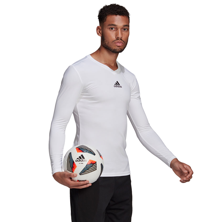 Koszulka męska adidas sprawdzi się jako pierwsza warstwa odzieży pod koszulką piłkarską w trakcie treningu. Dopasowany krój z długimi rękawami. Dekolt w serek. Technologia Aeroready odprowadza nadmiar wilgoci i zatrzymuje wydzielone ciepło. Niewielkie logo.