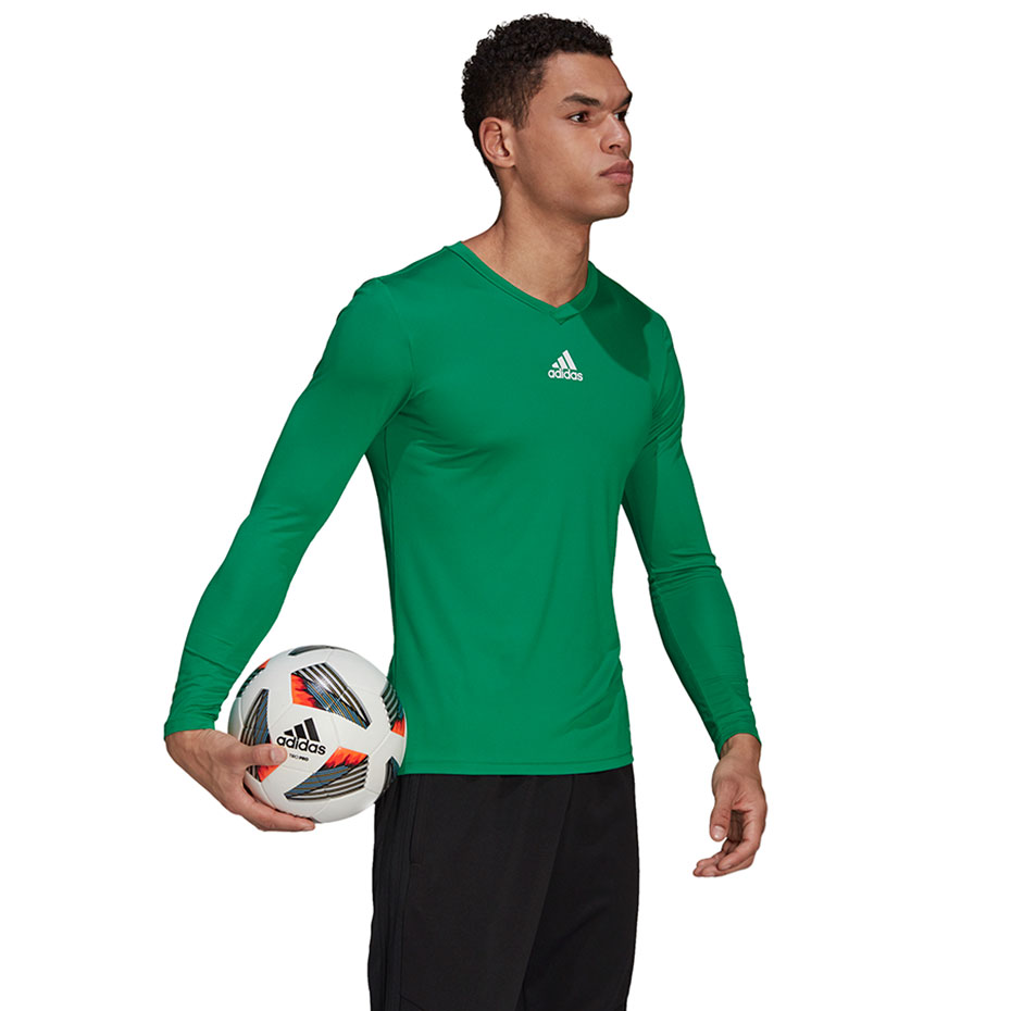 Koszulka męska adidas sprawdzi się jako pierwsza warstwa odzieży pod koszulką piłkarską w trakcie treningu. Dopasowany krój z długimi rękawami. Dekolt w serek. Technologia Aeroready odprowadza nadmiar wilgoci i zatrzymuje wydzielone ciepło. Niewielkie logo.