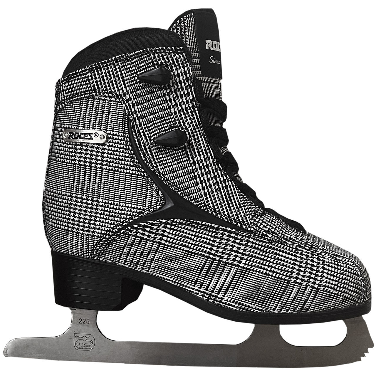 Nowoczesne łyżwy figurowe Roces Brits w ultramodnym, kobiecym wydaniu gwarantują komfortową jazdę i oryginalny look, zwracający uwagę na miejskim lodowisku. Syntetyczna, klasyczna cholewka ze standardowym sznurowaniem dba o optymalne dopasowanie do stopy. Miękka, anatomiczna wyściółka z ciepłą wkładką. Niezawodna płoza ze stali węglowej. Ponadczasowy fason, uzupełniony atrakcyjnym deseniem w czarno-białą kratę.