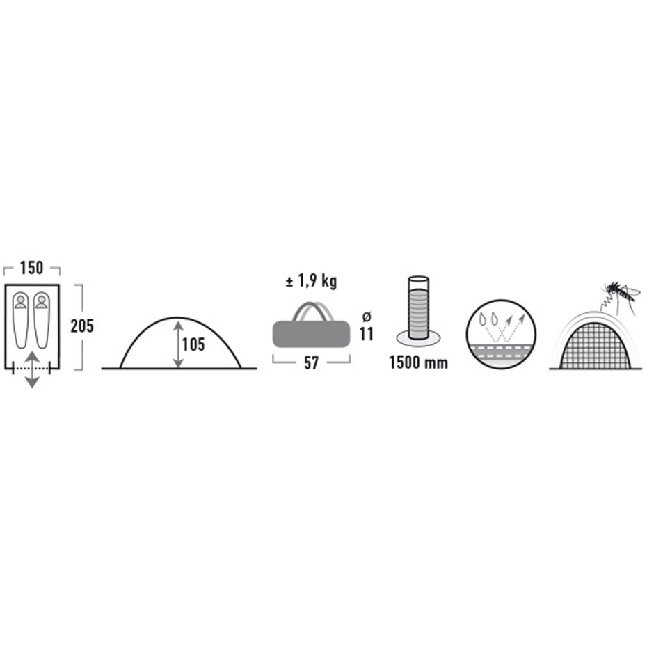 Jednopowłokowy namiot turystyczny typu igloo. Niewielkie wymiary i waga sprawiają, że jest łatwy do rozłożenia i złożenia. Wysokiej jakości materiały i doskonała wentylacja zapewniają komfort.