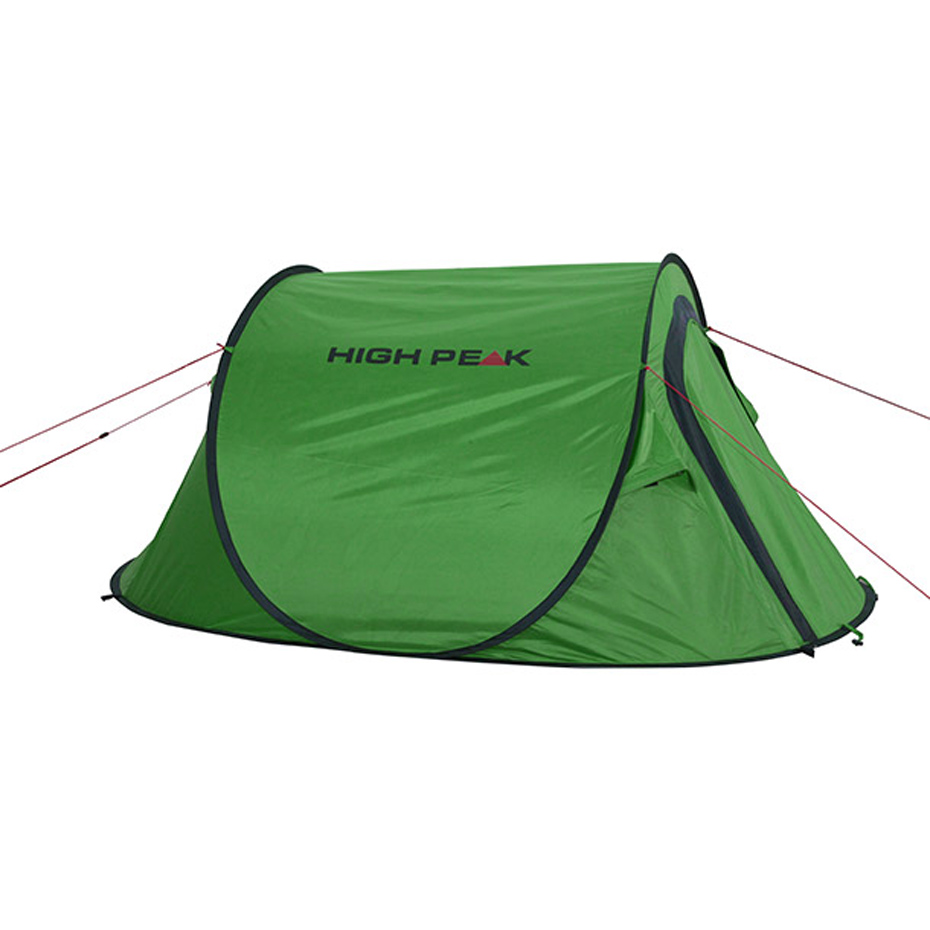 Na kilkudniowy biwak na polu namiotowym albo letni festiwal z pewnością przyda się namiot High Peak Vision 2, który wyposażony w niezawodny system pop-up, zapewnia ultraszybkie rozkładanie i komfortowy wypoczynek. Lekka i łatwa w obsłudze konstrukcja gwarantuje wygodną przestrzeń dla dwóch osób. Moskitiery w otworach. Klejone szwy. Wodoodporna powłoka PU. Stelaż z włókna szklanego. Kontrastowe, dobrze widoczne linki mocujące. Zielony model z czerwonymi linkami.