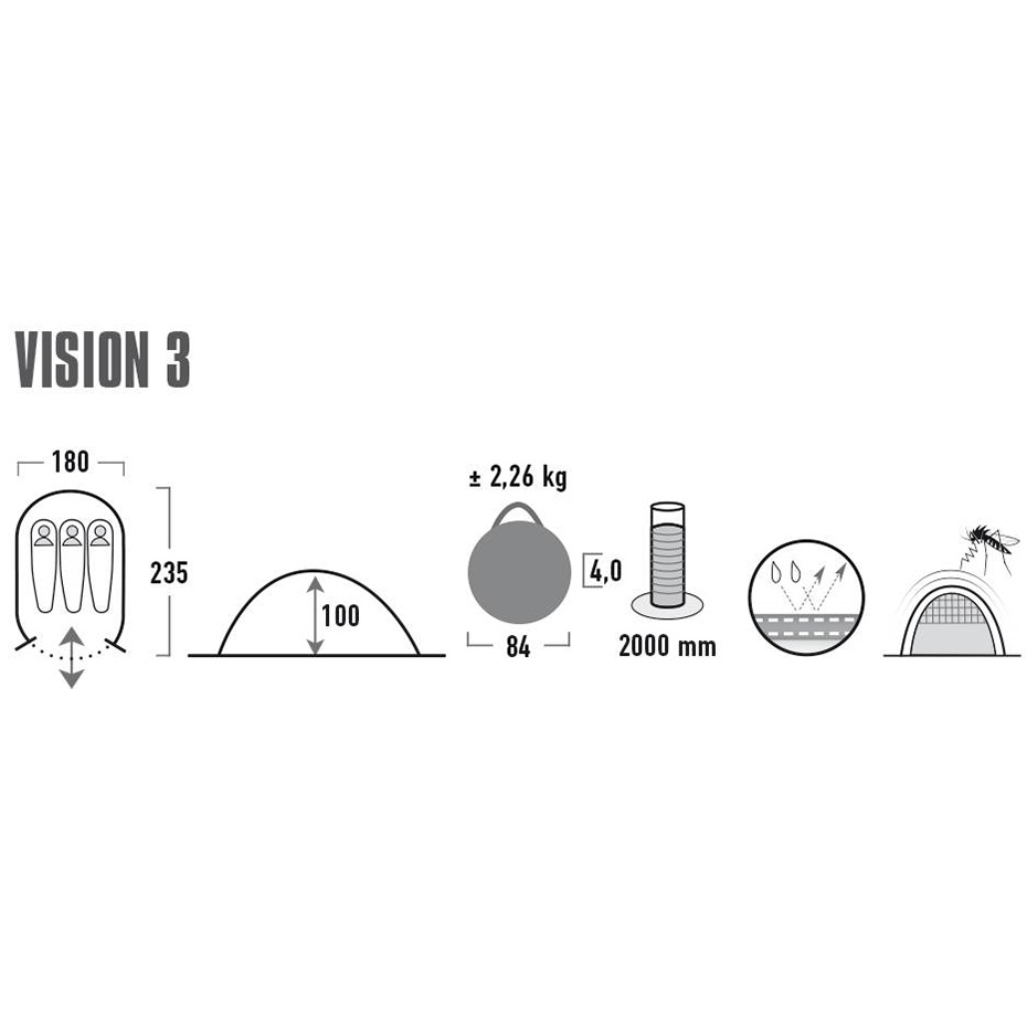 Samorozkładający się namiot High Peak Vision 3 zapewnia ogromną oszczędność czasu, dzięki czemu dłużej możesz czerpać radość z błogiego spokoju na łonie natury i towarzystwa przyjaciół. Łatwy w obsłudze trzyosobowy namiot jest świetnym rozwiązaniem na spontaniczny wyjazd za miasto lub letni festiwal w plenerze. Owalny kształt podłogi. Wyjście wyposażone w moskitierę. Wodoodporny, jednowarstwowy tropik. Pokrowiec.