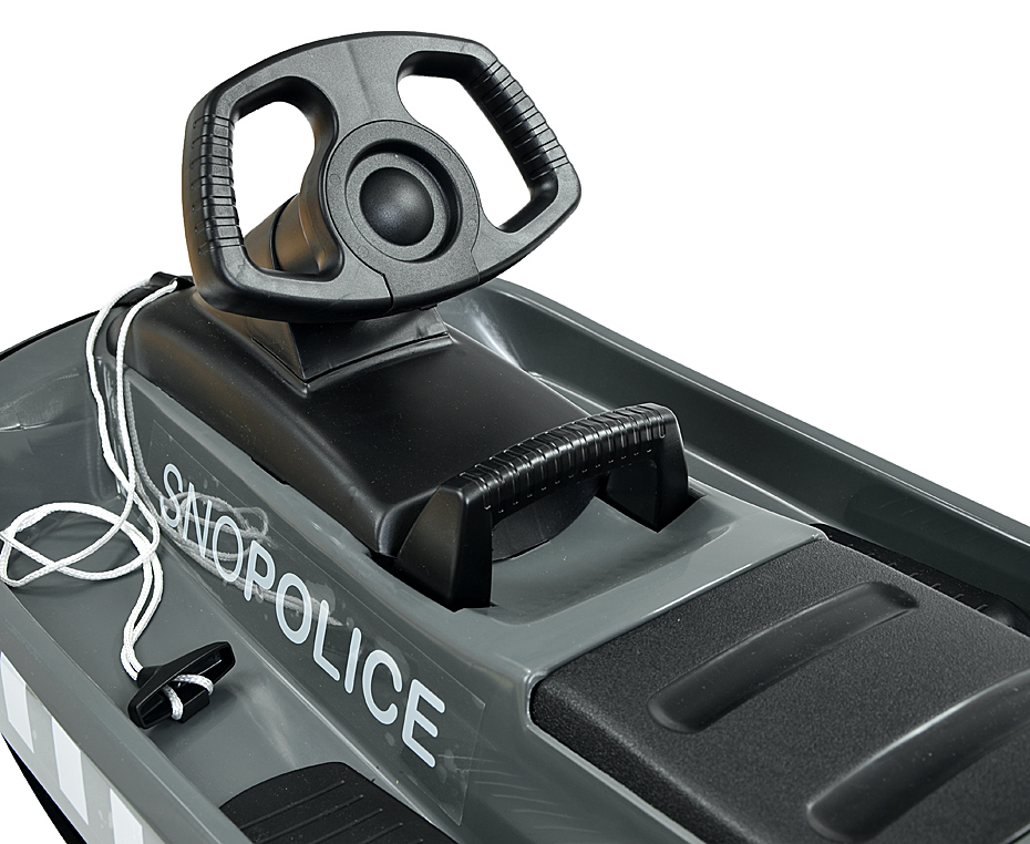 Nartosanki Hamax Sno Police są gwarantem świetnej zabawy na śniegu i sprawią niemało frajdy dzieciakom, które lubią szybko i bezpiecznie śmigać po stoku. Dopracowany model zapewnia wystarczająco dużo miejsca dla dwóch osób, co pozwala na wspólne przeżywanie radości z rodziną i przyjaciółmi. Szerokie płozy ze żłobieniami. Zintegrowana kierownica. Solidny hamulec ręczny z metalowymi kolcami. Praktyczny sznurek do wciągania sanek pod górę. Szaro-czarny model. Komplet naklejek do dekoracji inspirowanych policyjnym radiowozem.