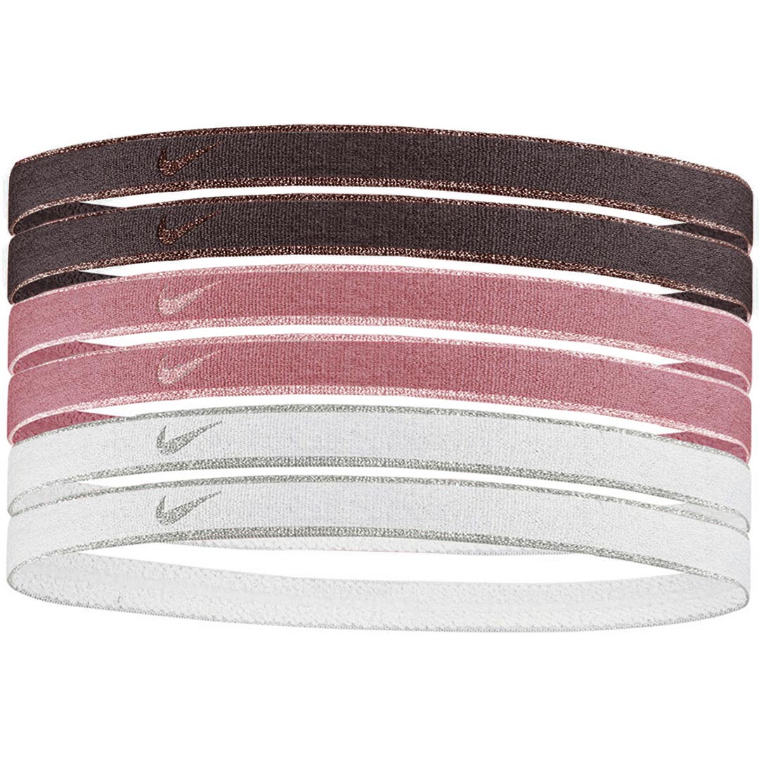 Opaski na głowę Nike wybierane są przez osoby aktywne którym zależy na poprawie komfortu w trakcie treningów. Elastyczna konstrukcja. Silikonowa, wewnętrzna taśma. Głównym zadaniem opasek jest podtrzymanie włosów w jednym miejscu i odseparowanie ich od twarzy. Zestaw obejmuje 6 opasek ozdobionych logo.