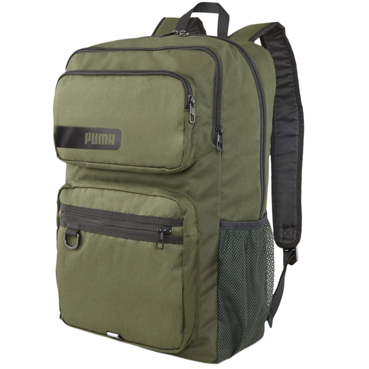 Plecak Puma to połączenie oryginalnego stylu i funkcjonalności w postaci dużej ilości kieszeni. Główna komora z przegrodą na laptopa i dwukierunkowym zamkiem. Przednia kieszeń umieszczona na górze i dwie frontowe kieszenie na zamek. Boczne kieszonki z siateczki wykończonej elastyczną gumką. Wyściełane profilowane szelki. Odblaskowe detale i oryginalnie umieszczone logo marki Puma. Częściowy, siateczkowy panel na plecach.