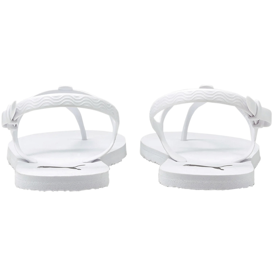 Sandały damskie Puma sprawdzą się podczas letnich wyjść. Konstrukcja przypominająca japonki. Boczne zapięcie. Miękka podeszwa zewnętrzna z lekkiej pianki CMEVA. Antypoślizgowa tekstura na spodzie. Model w kolorze białym.