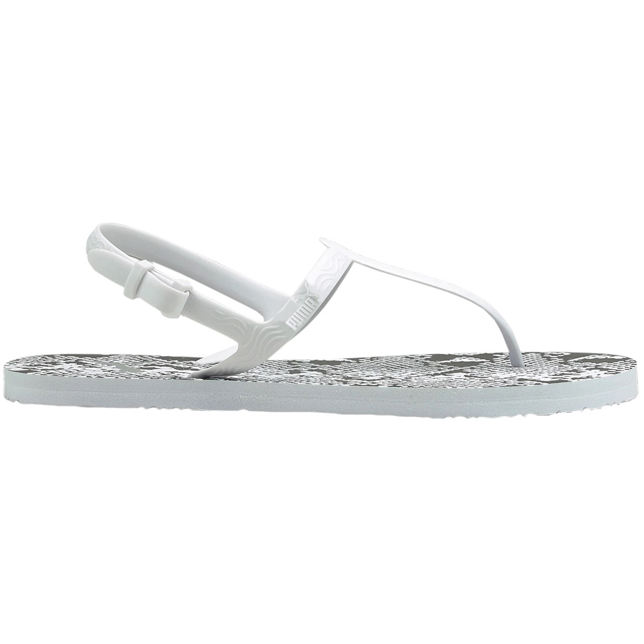 Sandały damskie Puma sprawdzą się podczas letnich wyjść. Konstrukcja przypominająca japonki. Boczne zapięcie. Miękka podeszwa zewnętrzna z lekkiej pianki CMEVA. Antypoślizgowa tekstura na spodzie. Model w kolorze białym z ciekawym printem na wkładce wewnętrznej.