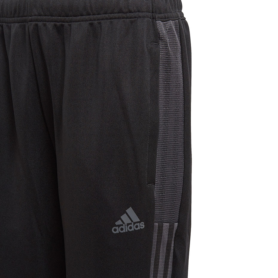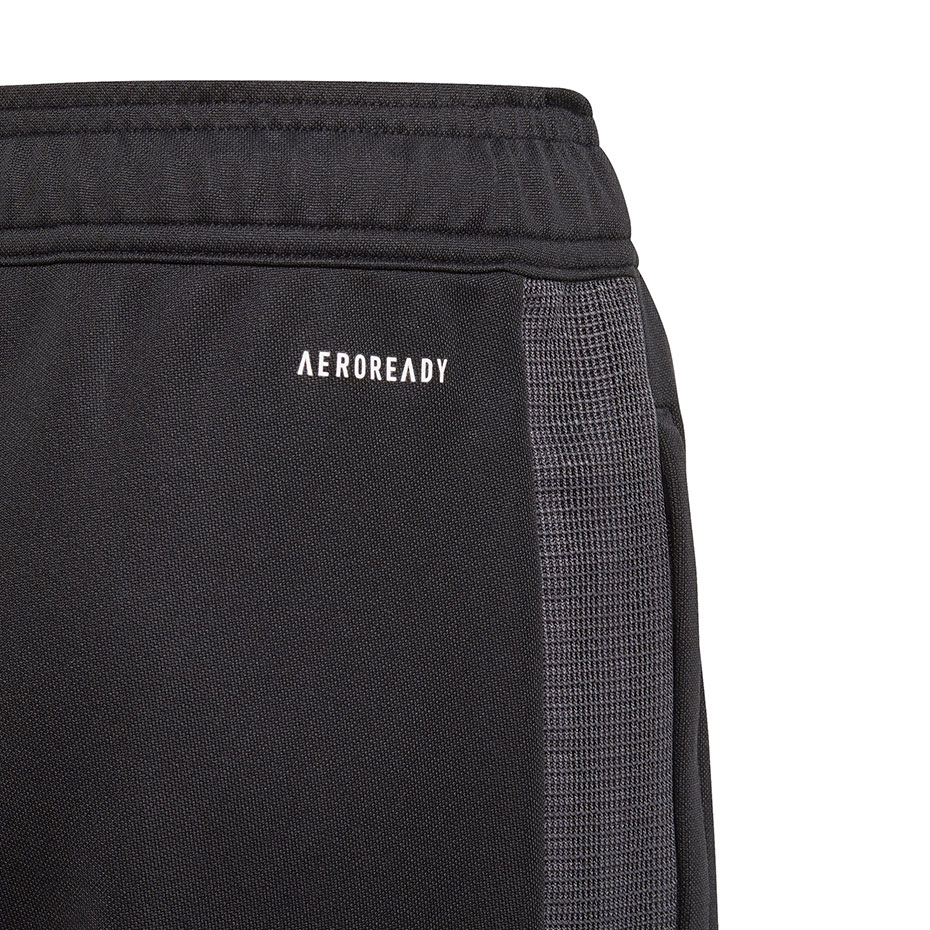 Spodnie dla dzieci adidas Tiro. Model sprawdzi się w czasie użytkowania na co dzień jak i w czasie treningu. Zaprojektowany z myślą o najmłodszych, którzy chcą podkreślić swój sportowy styl poza boiskiem. Elastyczna talia ze sznurkiem pozwala idealnie dopasować spodnie do sylwetki. Dwie kieszenie boczne zapinane na zamek. Dopasowany krój, który nie krępuje ruchów. Nogawki ze ściągaczami. Spodnie wykonane w technologii AeroReady, która odpowiada za odprowadzenie wilgoci na zewnątrz i pozostawienie ciała suchego w czasie wysiłku. Model w kolorze czarnym z szarymi detalami.