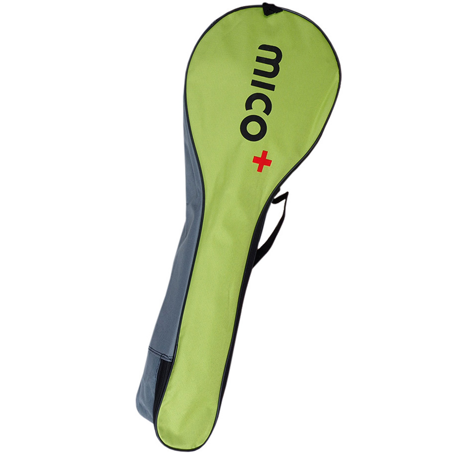 Zestaw do badmintona Mico przeznaczony jest dla graczy na różnym poziomie zaawansowania. W praktycznym pokrowcu znajdują się dwie rakietki o lekkiej konstrukcji, dwie lotki z nylonowymi koszyczkami oraz słupki i siatka do stworzenia boiska. Pokrowiec zapinany na zamek pozwala na wygodne przenoszenie i przechowywanie całości.
